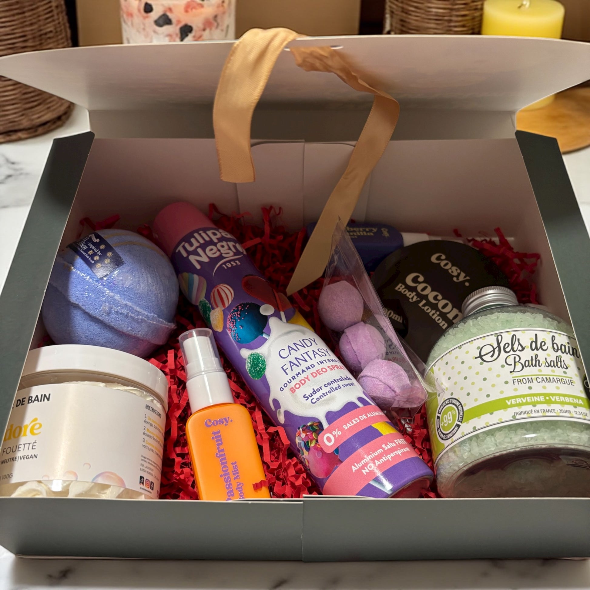 Offrez vous ce magnifique coffret de bain , avec les produits que vous retrouvez sur ma boutique le coffret ce compose :